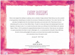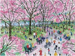 Un elegante puzzle da 1000 pezzi di GALISON raffigura i ciliegi in fiore a Washington, D.C., tratto da un'illustrazione di Michael Storrings; realizzato con materiali riciclati, con stampa opaca, e fornito in una scatola robusta.
