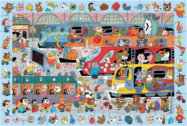 Immergiti nel mondo dei treni con un puzzle per bambini che unisce composizione e divertente caccia agli oggetti. Dopo aver assemblato 64 pezzi, i bambini affrontano la sfida: trovare oltre 40 oggetti nascosti nel riquadro attorno all’immagine. Attività ideale da fare insieme per bambini dai 4 anni e per tutta la famiglia.