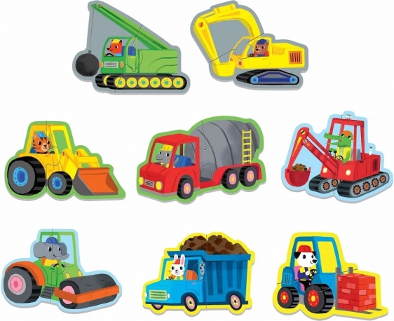 • 8 immagini di macchine da cantiere – semplici puzzle da 2 pezzi