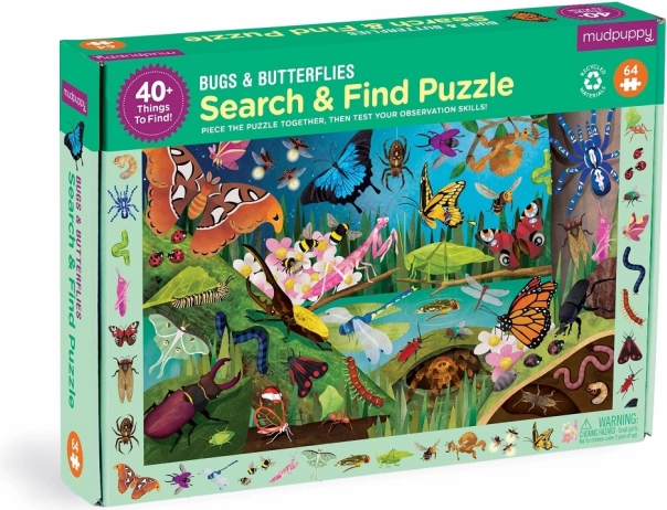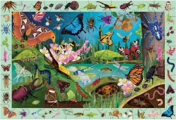 Entra nel vivace mondo degli insetti – dalla falena atlas alle lucciole fino alle coccinelle. Questo puzzle da 64 pezzi offre divertimento e apprendimento: prima si compone l'immagine ricca di dettagli e poi, nella cornice attorno alla scena, si cercano oltre 40 specie diverse. Grazie alla superficie opaca e al retro robusto, i pezzi sono piacevoli da maneggiare e combaciano perfettamente.
