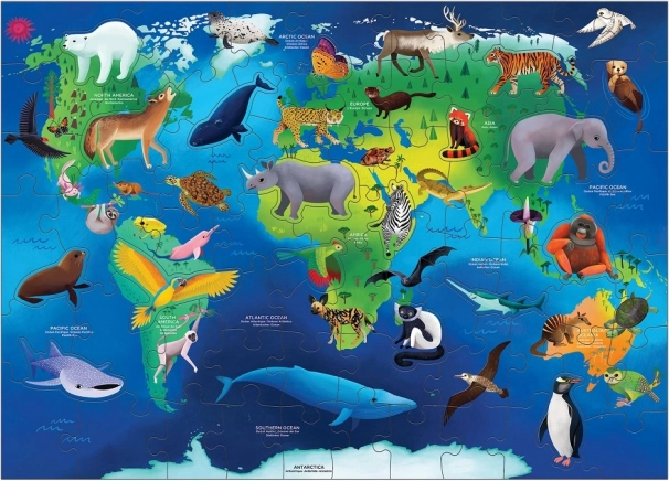 Questo puzzle educativo aiuta i bambini a comprendere meglio le specie animali in pericolo nei vari continenti e oceani. Oltre ai pezzi tradizionali, il puzzle include anche 17 pezzi sagomati speciali che aggiungono un ulteriore livello di divertimento e sfida.