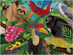 Il puzzle supporta la motricità fine e offre la scoperta del variegato mondo animale della foresta pluviale.