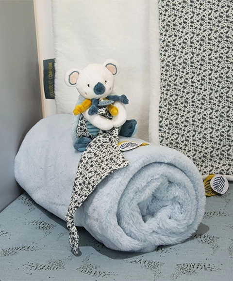 Una copertina per bambini adorabile e straordinariamente morbida con il motivo della koala Yoca offrirà al tuo bimbo comfort a casa, nel passeggino e in auto. Realizzata in pile premium, è morbida al tatto, adatta fin dalla nascita e conforme alle norme europee CE. Ideale come regalo di nascita o per Natale.