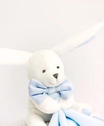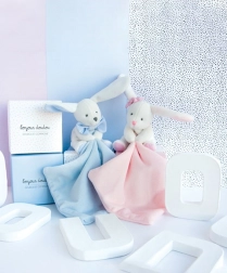Questo set regalo include un coniglietto bianco con una soffice copertina coccola blu, riposti in una bellissima scatola pronta per essere donata. Il materiale morbidissimo dona al neonato una sensazione di sicurezza e comfort, mentre la leggera copertina è facile da tenere tra le manine.