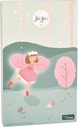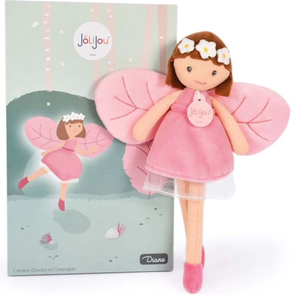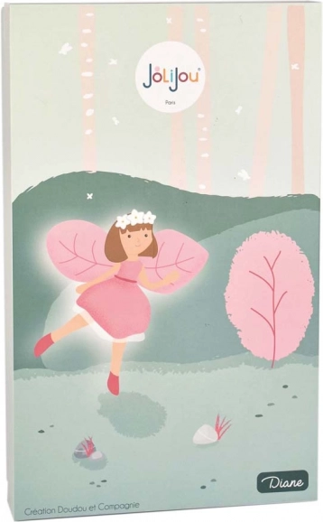 L'incantevole bambola Diana del marchio Doudou Jolijou delizierà i piccoli sognatori fin dalla nascita. Ha un corpicino tessile morbidissimo, occhi e bocca ricamati per la massima sicurezza e indossa un abito rosa con ali a forma di foglia. Inclusa una scatola regalo a tema bosco – ideale come dono.
