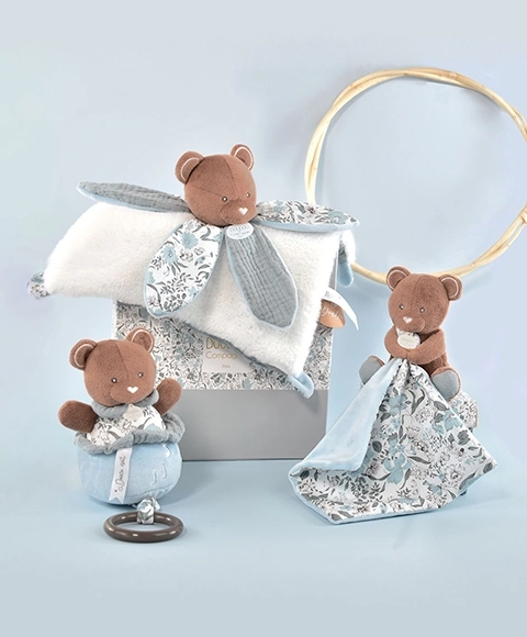 Orsacchiotto di peluche Doudou con copertina è il compagno ideale per il tuo neonato sin dalla nascita. Offre morbidezza, comfort e abbracci, stimolando i sensi e la curiosità dei bambini.