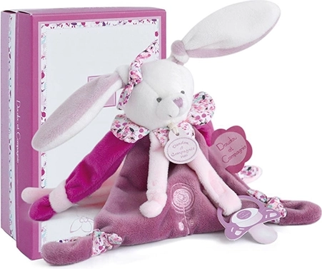 Questo coniglietto di peluche offre una soluzione 2 in 1 - funge da giocattolo e da porta ciuccio. Grazie alla sua estrema morbidezza e al tocco piacevole è il compagno ideale per il tuo bambino dalla nascita. Il coniglietto è collocato in una bellissima confezione regalo, che è non solo estetica ma anche pratica per il dono.