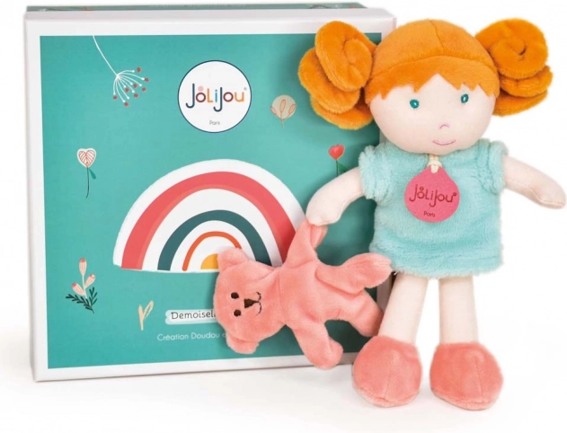 La bambola Miss Mint con il suo abito verde menta porta magia e fascino in ogni stanza dei bambini. I suoi occhi, naso e bocca ricamati garantiscono sicurezza e un aspetto adorabile. Con un piccolo orsetto nella manina, diventa un compagno davvero unico.