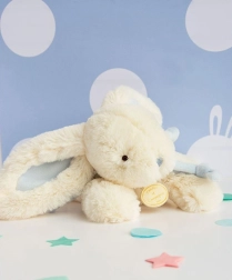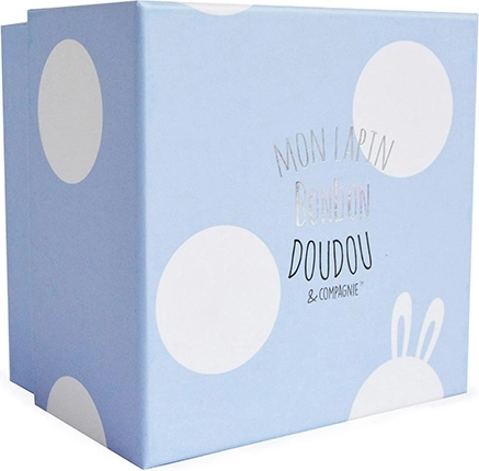 Questo coniglietto di peluche color crema con orecchie blu è confezionato in una splendida scatola regalo, che emana modernità e lusso. Questo giocattolo non è solo piacevole al tatto, ma soddisfa anche le norme CE europee. È un regalo ideale per i neonati.