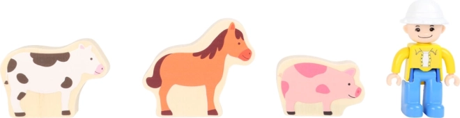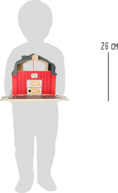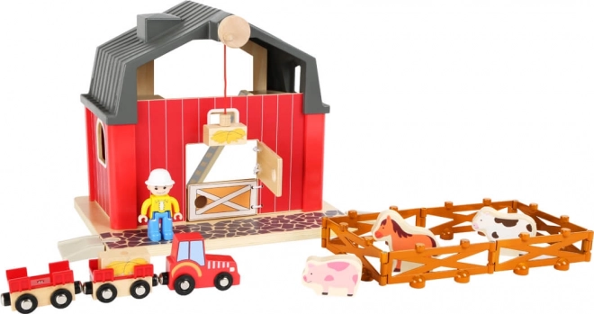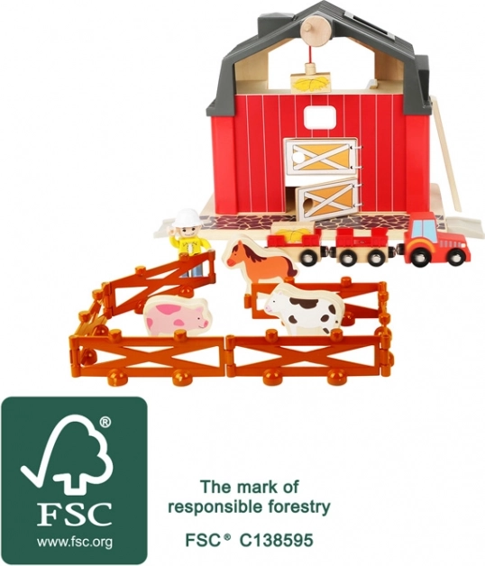 Questa fattoria in legno SMALL FOOT è un set di gioco ideale per bambini dai 3 anni. Offre elementi realistici di gioco: fienile con portoni doppi, gru funzionante per stoccare il fieno al piano superiore e balle magnetiche che si sollevano e trasportano facilmente con il trattore con rimorchio incluso. Inclusi anche cavallo, mucca, maialino e sei pezzi di recinto.