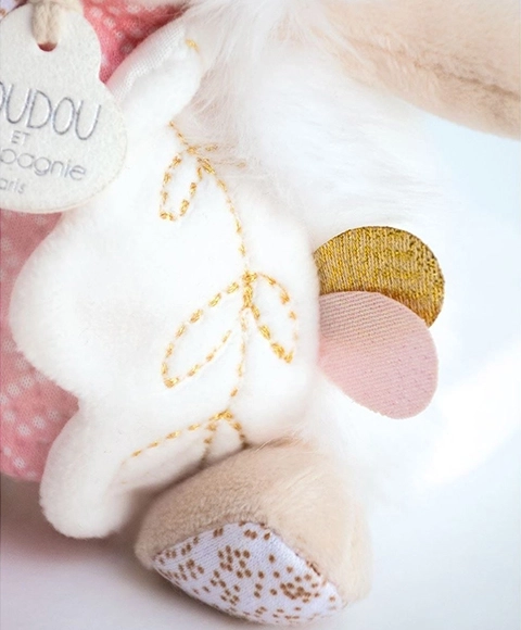 Questo morbido coniglietto unisce tre funzioni in una: pupazzo coccoloso, sonaglino delicato per lo sviluppo dell’udito e portaciuccio, grazie al quale il ciuccio sarà sempre a portata di mano. Il peluche morbido di qualità premium garantisce un tocco piacevole e coccole sicure fin dai primi giorni di vita.