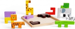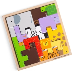 Grazie alle forme studiate, i bambini possono usare i pezzi anche fuori dalla cornice – creare il proprio safari e sviluppare fantasia e vocabolario.