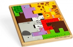 Scoprite il colorato mondo del safari con un puzzle in legno di qualità, che cattura i bambini con illustrazioni amichevoli degli animaletti. Ogni pezzo è sagomato per inserirsi perfettamente nella cornice in legno e, al tempo stesso, fungere da figurina autonoma per il gioco libero. Questo gioco sensoriale favorisce concentrazione, pazienza e il piacere della scoperta.