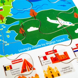 Scoprite l'Europa in modo ludico con il puzzle da pavimento in legno Bigjigs Toys – mappa dell'Europa con 48 pezzi. I bambini da 2 anni allenano, durante la composizione, la motricità fine, la concentrazione e imparano a riconoscere le bandiere e i monumenti famosi. I pezzi grandi e robusti si impugnano facilmente e il puzzle è realizzato in legno di qualità proveniente da fonti responsabili, conforme alle norme di sicurezza europee.