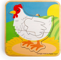 Puzzle in legno che mostra ai bambini il ciclo di vita della gallina, dall’uovo all’età adulta. Possono assemblarlo i bambini da un anno e mezzo. Impareranno qualcosa di nuovo sul regno animale. Caratteristiche principali: età: 1,5+; bellissima realizzazione colorata; realizzato in legno