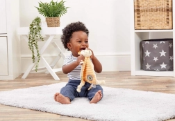 Grazie al corpo piatto “a copertina” è facile da afferrare anche dalle manine più piccole e la struttura leggera è perfetta per lettino, passeggino e in viaggio. Il pratico lavaggio a mano facilita la manutenzione e prolunga la vita del giocattolo preferito.