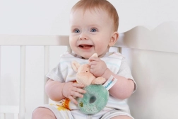 Questo giocattolo è dotato di un delicato sonaglio che favorisce lo sviluppo dei sensi e stimola il bambino tramite suono e tatto.