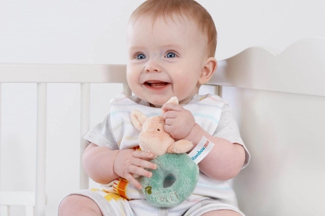 Scopri il mondo di Winnie the Pooh con il nostro sonaglio di peluche Porcellino. Questo giocattolo non è solo visivamente attraente, ma anche funzionale. Ha un sonaglio delicato, un ottimo strumento per sviluppare la percezione sensoriale del tuo bambino.