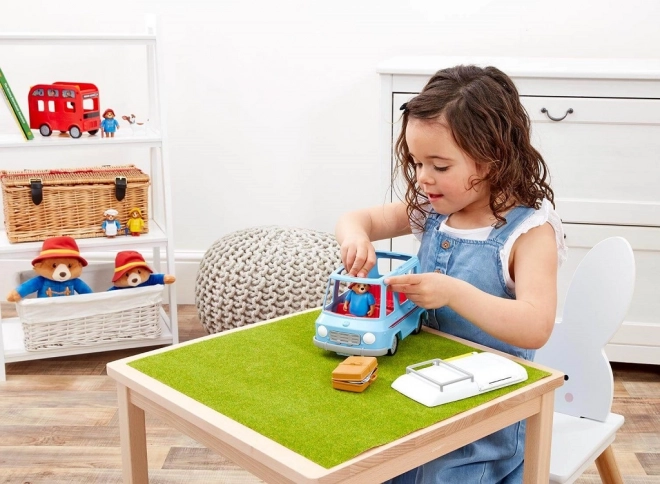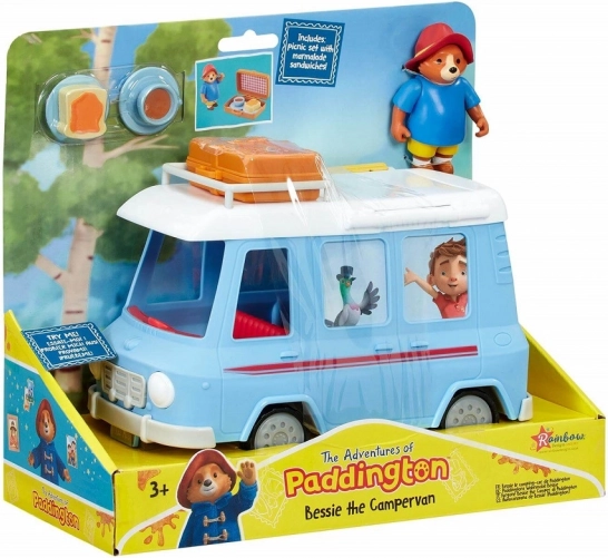 Vi presentiamo il caravan Bessie, pieno di sorprese e divertimento. Rimuovi il tetto e scopri tutto ciò che accade all’interno. Quando è il momento della merenda, puoi stendere la coperta e aprire la valigetta con il panino alla marmellata. Gli effetti sonori, inclusa la voce di Paddington, aggiungono autenticità a ogni avventura.