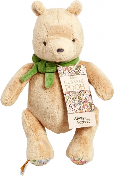Costruisci un'amicizia per tutta la vita con il classico eroe del Bosco dei Cento Acri. Questo orsetto di peluche Winnie the Pooh, soffice e amichevole, è realizzato con tessuti straordinariamente morbidi che invitano alle coccole. Grazie alla dimensione compatta di 22 cm, è ideale per il lettino, il passeggino e i viaggi.