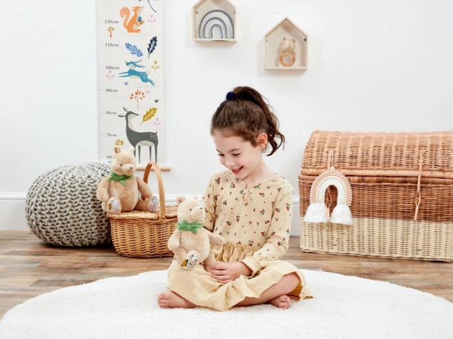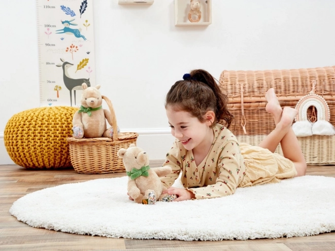 L'orsetto è progettato nel rispetto del pianeta: i materiali impiegati sono sostenibili e l'imbottitura è composta da fibre ricavate da bottiglie di plastica riciclate. L'elegante sciarpa verde con fiocchetto e il delicato motivo boschivo sulle zampette gli conferiscono un look senza tempo che piacerà a bambini e genitori. Adatto fin dalla nascita, perfetto come regalo per neonato.