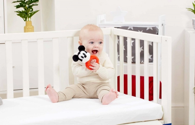 Il sonaglio in peluche MICKEY MOUSE, nel popolare abbinamento di colori nero, bianco e rosso, è un ottimo compagno per le prime scoperte del mondo. I materiali soffici sono piacevoli al tatto, mentre il tintinnio discreto motiva il bambino a muoversi, scuotere e esplorare.
