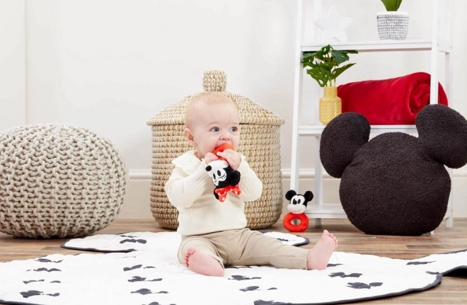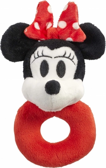 Adorabile sonaglio di peluche MINNIE con anello morbidissimo per la manina, che farà felice ogni bebè fin dalla nascita. Realizzato in morbida pelliccia di alta qualità nello stile nero‑bianco‑rosso, contiene un sonaglio delicato per stimoli sensoriali e per supportare la motricità fine, l’afferrare e l’agitare.