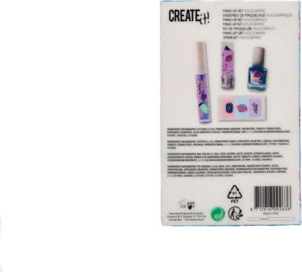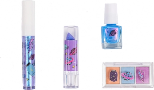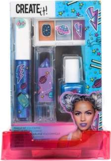 Questo set trucco è ideale per tutte le anime creative che desiderano esprimere il proprio stile attraverso un make-up originale. Ombretti, lucidalabbra, rossetto e smalto in colori olografici ti permettono di sperimentare e creare look nuovi e sorprendenti.
