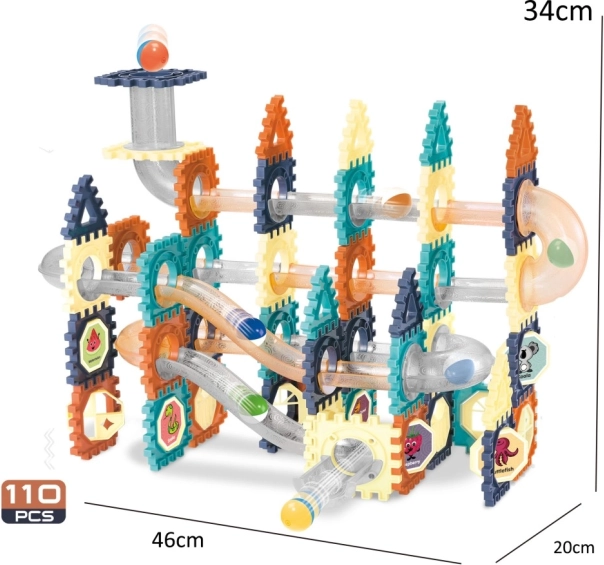 Set di costruzione creativo pista per biglie 110 pezzi per piccoli e grandi costruttori. Costruisci piste originali, gioca a domino e gare di biglie e sviluppa immaginazione, motricità fine e orientamento spaziale. Facilmente ampliabile e combinabile con altri set, adatta dai 3 anni.