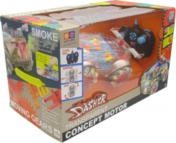 Scopri un’unica combinazione di divertimento e tecnica. La carrozzeria trasparente dell’auto RC permette di osservare in tempo reale il lavoro degli ingranaggi colorati e della meccanica. L’effetto fumo si crea facilmente: riempi il serbatoio d’acqua, premi il pulsante e goditi lo spettacolo visivo durante la guida.