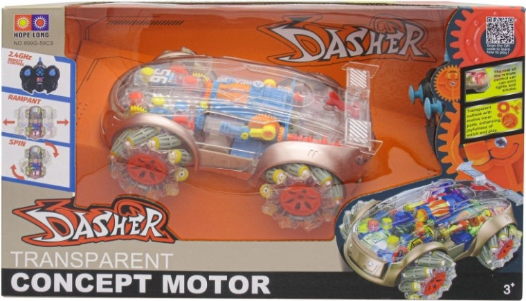 Vivi un divertimento adrenalinico con questa auto RC dalla carrozzeria trasparente che svela gli ingranaggi in movimento. Offre effetti luminosi e sonori, un realistico effetto fumo a base d’acqua, movimento multidirezionale incluso drift laterale e un affidabile controllo a 2,4 GHz con portata fino a 30 m.