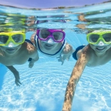 Maschera Bestway Aquanaut è ideale per i giovani appassionati di avventure subacquee, equipaggiata con lenti in policarbonato con filtro UV e fascia completamente regolabile.