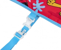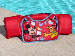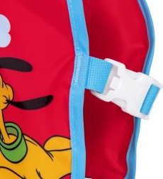 Il materiale tessile ad asciugatura rapida è piacevole al tatto e, a differenza della gomma, non si appiccica alla pelle. Il motivo allegro con Mickey Mouse e Pluto incentiva il gioco e l’apprendimento del nuoto, mentre il rosso acceso aumenta la visibilità in acqua. La circonferenza toracica consigliata è di 56 cm. Il gilet è destinato all’uso solo in acqua e sotto la supervisione di un adulto.