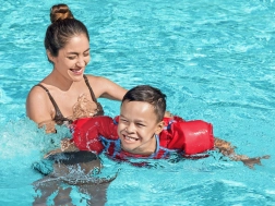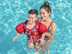 L’imbottitura in schiuma, in combinazione con i braccioli e il pannello toracico, favorisce la stabilità in acqua e dona ai bambini sicurezza durante l’apprendimento delle abilità natatorie.
