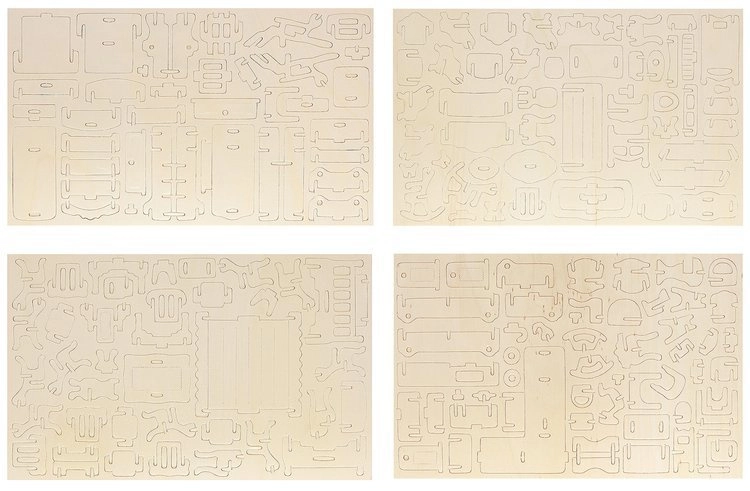 I singoli pezzi si incastrano facilmente in modelli tridimensionali. Grazie alla superficie naturale, i mobili possono essere dipinti e decorati a piacere.