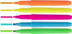 La confezione include cinque colori vivaci (arancione, giallo, rosa, blu, verde) con punta larga per una colorazione fluida e intensa.