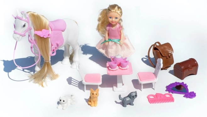 Scopri il magico mondo della fantasia con questo set da gioco per bambini. Include una bambola, un cavallino, adorabili gattini e ricchi accessori per ore di divertimento creativo. Ideale per sviluppare immaginazione, giochi di ruolo e motricità fine. Il set offre un equipaggiamento completo per giocare e una facile combinazione con altri giocattoli.
