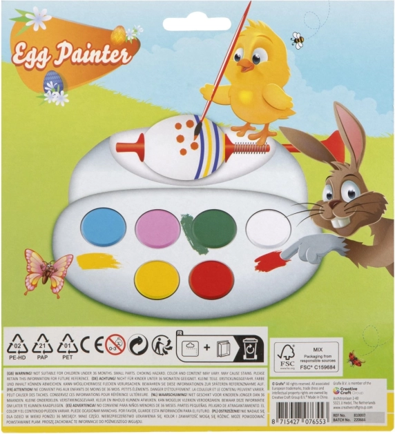Crea decorazioni pasquali originali con un pratico set per dipingere le uova. Include un supporto per tenere comodamente l’uovo, una tavolozza con 6 acquerelli e un pennello – tutto ciò di cui hai bisogno per una decorazione creativa senza disordine.