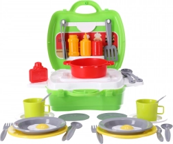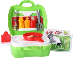 Questo set cucina include tutto il necessario per idee culinarie dei tuoi bambini. È facilmente trasportabile grazie al design a forma di borsa, permettendoti di montarlo e giocare ovunque sia necessario. Il set è progettato per sviluppare l'immaginazione dei bambini e aiutarli a riconoscere gli oggetti, divertendosi.