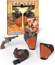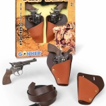 Questo set in metallo di revolver da cowboy porta ai bambini e agli adulti la classica atmosfera del West. Due pezzi di qualità in metallo con fondina doppia, facili da indossare e comodi da impugnare. Grazie all’effetto sonoro risultano realistici, pur rimanendo sicuri – senza spari e senza proiettili.