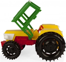 Il trattore della serie Color Cars sviluppa la motricità fine, la coordinazione occhio–mano e la fantasia. Le parti mobili – cabina sollevabile, cofano apribile e asse anteriore sterzante – aggiungono autenticità al gioco e insegnano ai bambini le basi della tecnica e della cura degli animali.