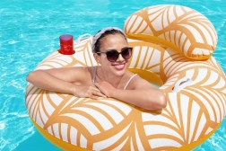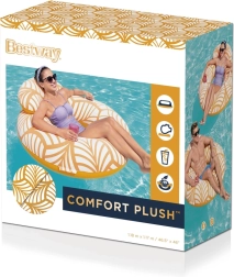 Rilassati, distenditi e ricaricati mentre ti godi il lussuoso materiale vellutato Bestway Comfort Plush Deluxe. Il materiale conferisce al galleggiante una struttura liscia e morbida, ideale per una giornata in piscina! Comfort Plush è perfetto per le giornate calde, poiché fa sì che la superficie del galleggiante non si surriscaldi troppo quando è esposta al sole cocente. Quando viene messo in acqua, i colori diventano più intensi creando un effetto accattivante. Con il cuscino potrai rilassarti tutto il giorno restando al tempo stesso elegante e comodo! Inoltre, il portabicchiere integrato ti permette di avere sempre a portata di mano la tua bevanda o uno snack. Nella struttura è integrata una valvola a doppia via per un gonfiaggio e sgonfiaggio dell’aria semplici ed efficienti. La ciambella Comfort Plush Deluxe può essere facilmente piegata e riposta fuori stagione. Questo lussuoso galleggiante da piscina è ideale per le giornate estive e rappresenta il modo perfetto per rilassarsi in acqua. Un vantaggio indiscutibile della ciambella è che favorisce l’attività fisica. Mettila in borsa e preparati a tante giornate di sole da ricordare, ovunque ti portino le avventure estive.