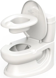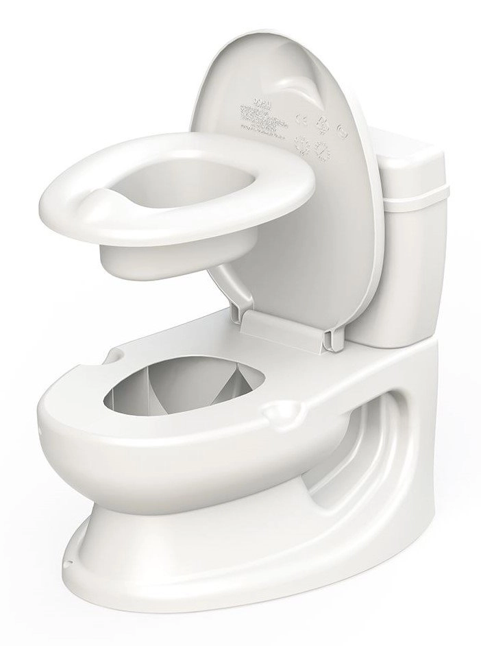 Include un pulsante funzionale con suono di scarico, che motiva i bambini, un portarotolo laterale per carta igienica e un vano portaoggetti nel serbatoio per piccoli accessori. La vaschetta interna estraibile consente una pulizia rapida e igienica, mentre il fondo antiscivolo assicura stabilità sul pavimento.