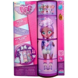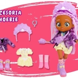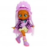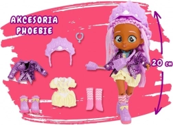 Phoebe adora il colore viola: ha i capelli viola, una tuta gialla con dettagli viola, una giacca metallizzata, anfibi e calzini alti! Il look è completato da una borsa viola, una fascia ispirata ai dinosauri e un esclusivo ciondolo BFF.