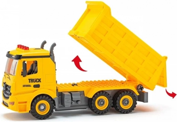 Divertente autocarro ribaltabile per bambini a batteria che i piccoli possono montare e avvitare da soli. Sviluppa la motricità fine, favorisce il gioco creativo e, grazie alle ruote funzionanti, è pronto per ogni avventura di costruzione. Idea regalo ideale per piccoli costruttori dai 3 anni in su.