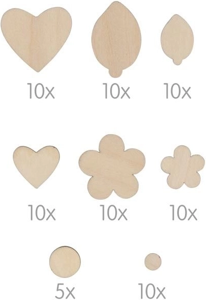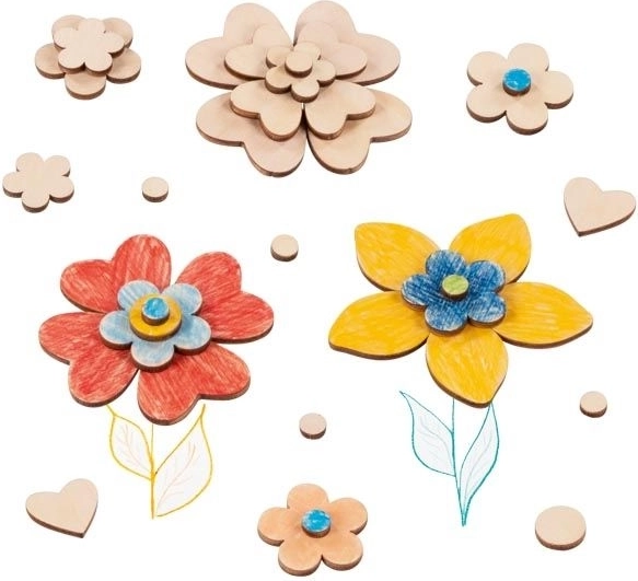 Con questo set variegato di dischetti di legno a forma di fiorellini potrai creare decorazioni originali, bigliettini, quadretti e addobbi stagionali. Gli elementi con dimensioni da 7 a 32 mm si incollano, si combinano e si colorano facilmente, così i bambini possono sviluppare fantasia e manualità.
