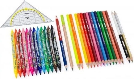 Dotazione scolastica completa per piccoli artisti! Questo set contiene in totale 31 pezzi – pastelli colorati e pennarelli per disegnare, colorare e realizzare progetti creativi. Ideale per bambini dai 3 anni, per la scuola e per casa. Confezione pratica, ampia scelta di colori e design sicuro con marcatura CE.