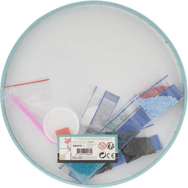 La pittura diamantata GRAFIX offre una creazione rilassante con un risultato sorprendente. Grazie ai simboli chiaramente contrassegnati e all’applicazione delle gemme con la penna, darai vita con facilità a una mandala precisa e scintillante con marcati accenti turchesi, che diventerà un’elegante decorazione per la tua casa.
