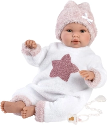 La dolcissima bambola LLORENS New Born 36 cm conquista con la sua fattura realistica, il corpo in tessuto morbido e i suoni da neonato. Premendo il petto dice “mamma”, “papà” ed emette un pianto autentico. Ha arti articolati, può anche stare seduta ed è ideale per il gioco di cura. Prodotta a mano in Spagna, viene fornita in una scatola regalo.