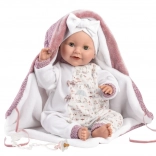 Questa bambola realistica Llorens New Born è pensata per un gioco genitoriale autentico. Il morbido corpo in tessuto è piacevole al tatto, mentre gli arti in plastica con articolazioni consentono un posizionamento naturale e la posizione seduta. Premendo il petto, la bambola pronuncia “mamma”, “papà” e avvia un pianto realistico che favorisce il gioco empatico.